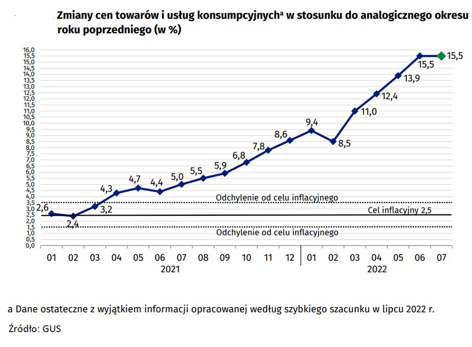 The causes for inflation in the short term and medium term remain a contested issue. Ale były też głosy że inflacja będzie niższa. W ujęciu rocznym w lipcu 2022 r podał Główny Urząd Statystyczny GUS.